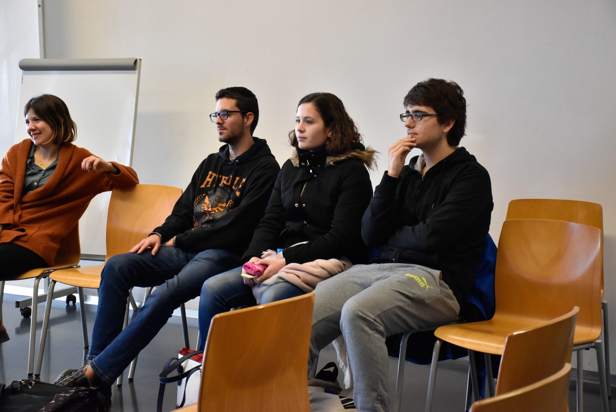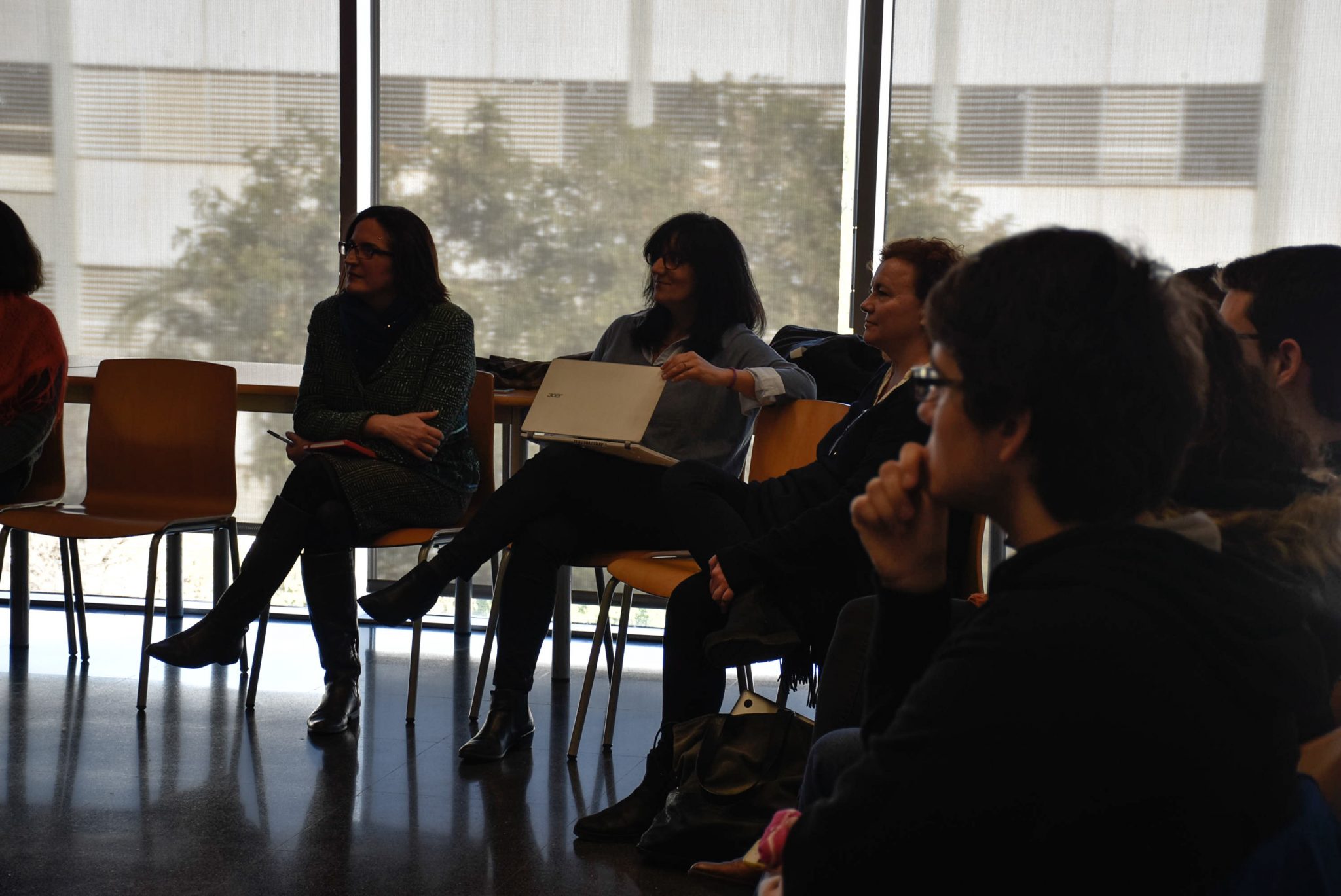 Se proyectó la charla «El mundo necesita todo tipo de mentes» que Temple Gradin dio en TED (2010) y la noticia breve «Más mujeres en la ciencia» (TV Parlamento Europeo) abriendo así el diálogo entre las participantes y el público asistente.