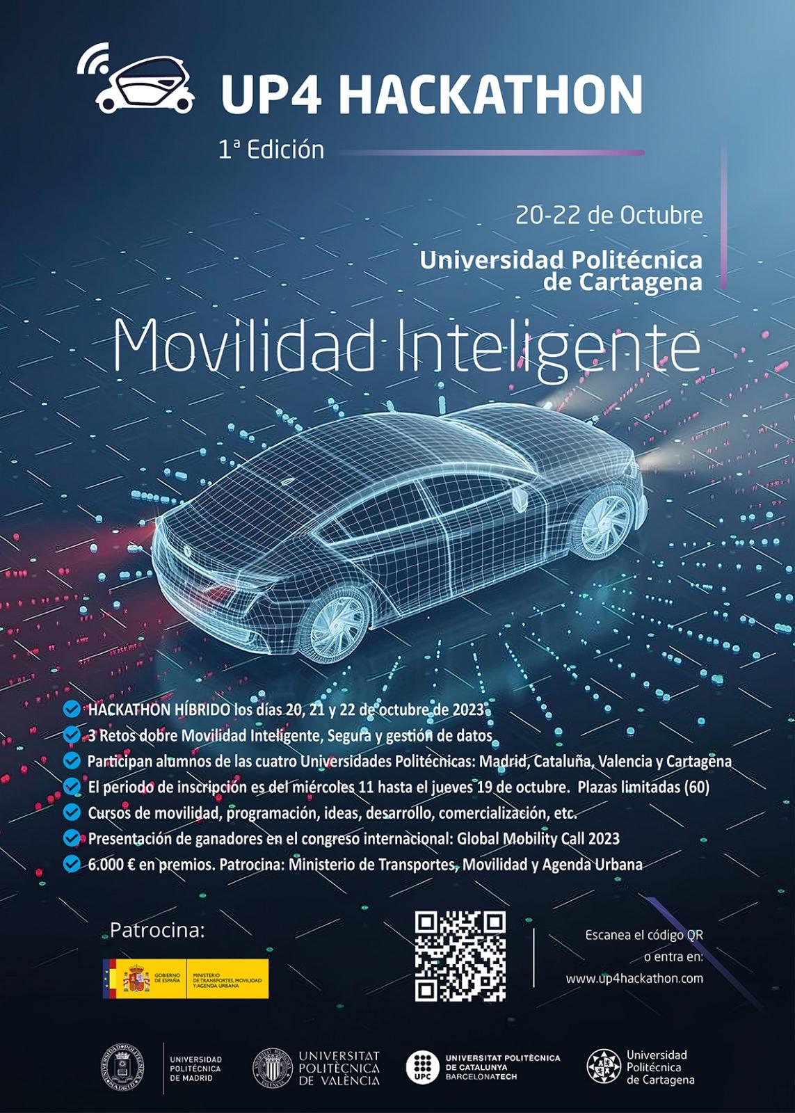 La semana pasada, del 20 al 22 de octubre de 2023 se llevó a cabo online y en las instalaciones de la Casa del Alumno el Up4 Hackaton. En el que estudiantes de las cuatro Universidades Politécnicas (Madrid, Cataluña, Valencia y Cartagena) se unieron en un encuentro multidisciplinario para proponer soluciones en el ámbito de la Movilidad Segura, Sostenible y Conectada.