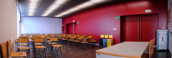Por último en esta planta encontramos la Sala de Grados de la planta primera. Esta sala esta preparada para una capacidad de 30 personas. Esta dotada de un sistema de megafonía inalámbrico y cañón de proyección fijo y permite la conexión múltiples entradas de audio. Dispone de una pantalla, un cañón de vídeo fijo y una pizarra blanca.