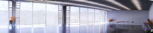 Esta sala de grandes dimensiones y con una terraza cubierta, consta de 20 grandes mesas. Su uso esta pensado para el trabajo en grupo o individual, así como para el montaje de exposiciones, o conferencias.
